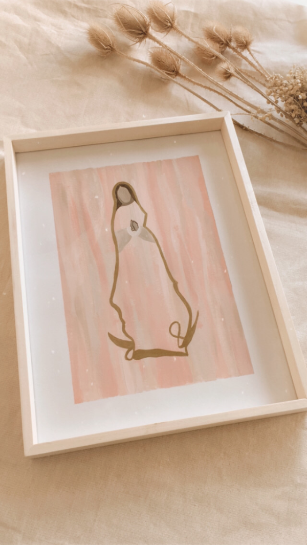 Tamaño 30 x 40 cms, en marco box de madera natural.